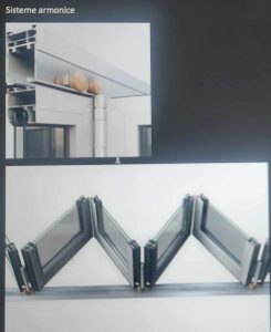 Sunt sisteme pliante folosite la închideri terase cât și industrial sau delimitări de spații, au un design deosebit și pot fi comandate în doua tipologii: una suspendată de partea superioara cu role în ghidajul de sus iar cea de a doua pe pardoseala cu role alunecoase pe ghidajul de jos